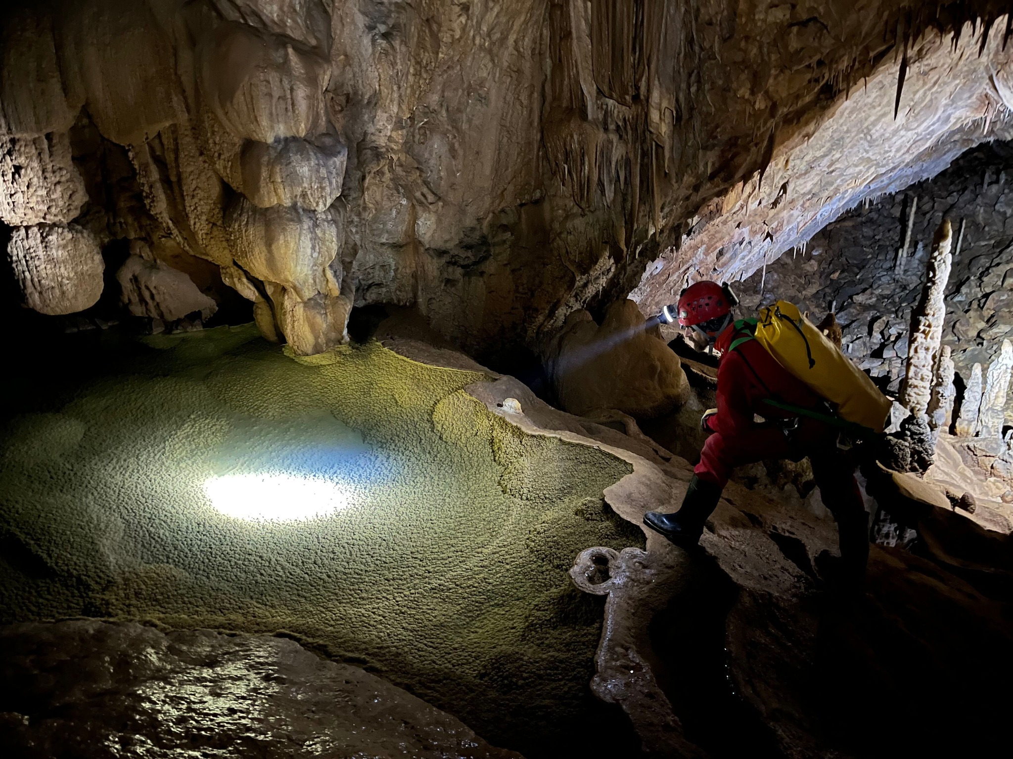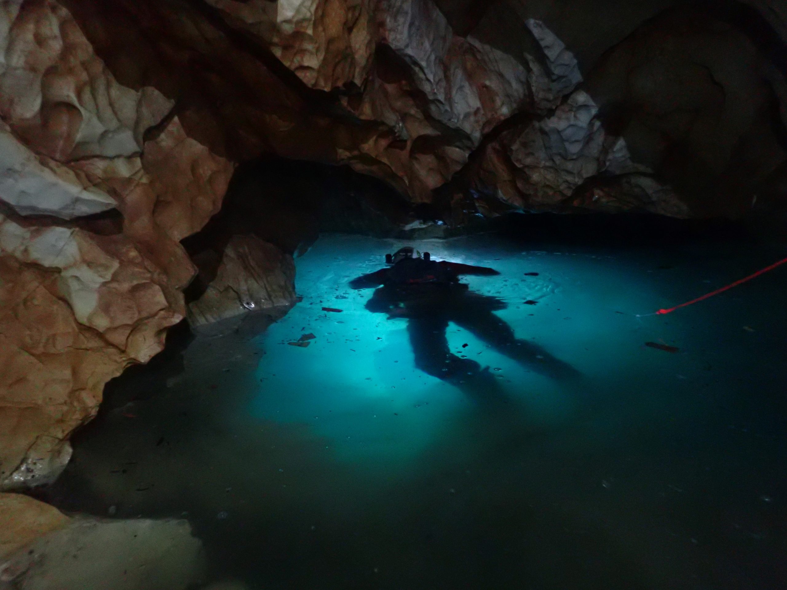 Po nekaj spomladanskih akcijah in pripravah je včeraj Žan ob pomoči Davida, Aljoše in Samota pod vodo montiral manjšo platformo v velikem sifonskem jezeru pod vhodnim breznom ''Grotta del Timavo'', od koder bodo v prvi fazi štartale potapljaške raziskave enega najpomembnejših evropskih sifonskih sistemov, izvirov Timava.