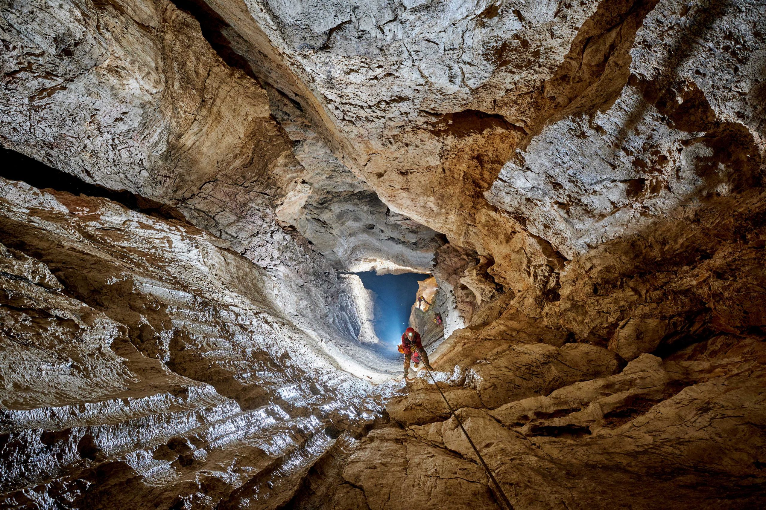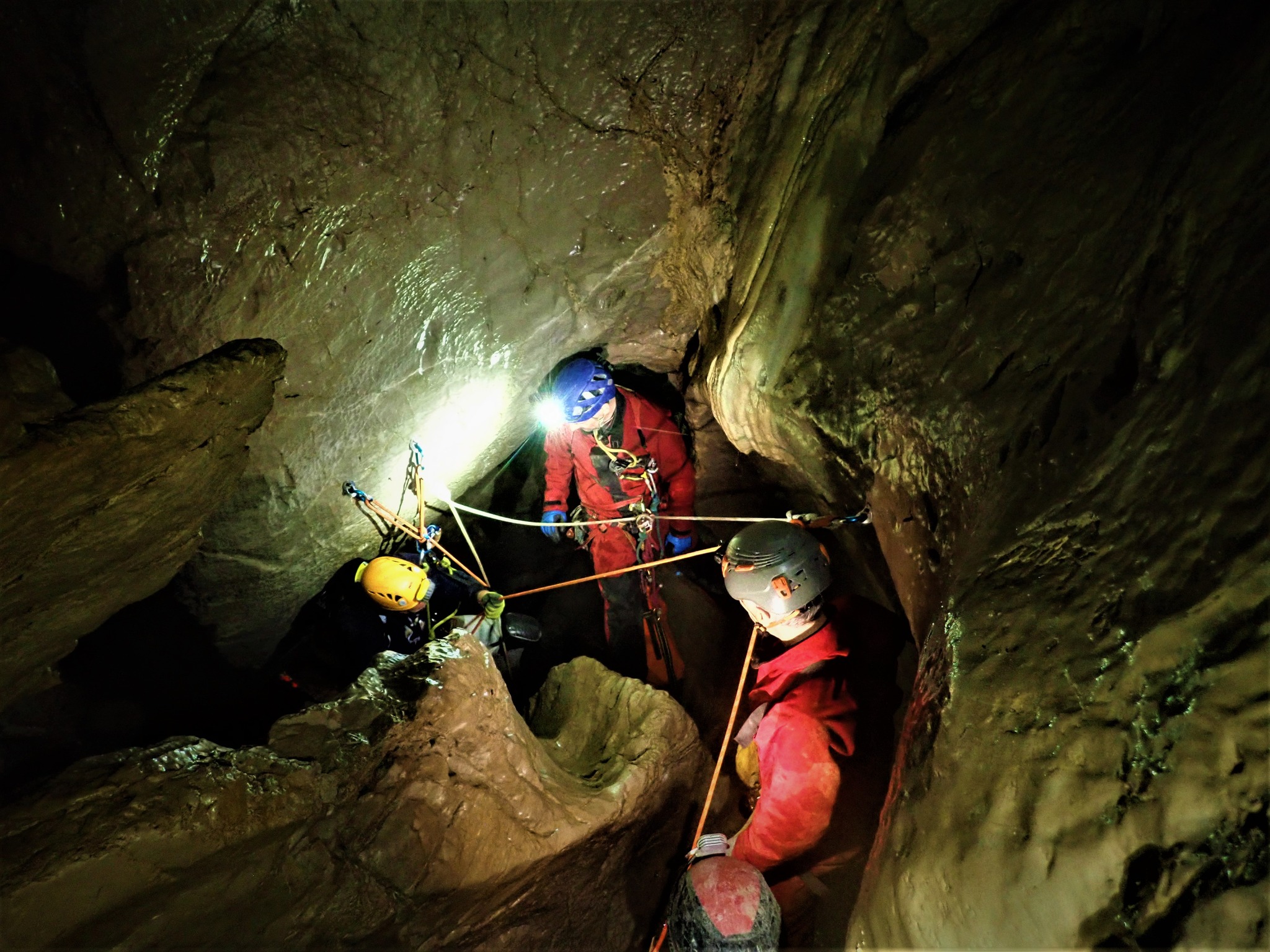 Včeraj popoldne smo zaključili s prvo fazo raziskav novih delov Kamenšce. Žal se nadaljevanje z breznom za špranjo na koncu meandra, katerega smo dosegli že pred skoraj 30 leti, priključi v končno dvorano novih delov. V končni dvorani, katero smo po novem imenovali ''Zadimljena dvorana'', je Žan že zadnjič splezal kamin, praktično skoraj do prej omenjene špranje na koncu meandra. Tjaša in merilci so na prejšnji akciji izmerili skoraj vse nove dele in sicer jih bo nekaj več kot 200 m. Raziskovanja bomo nadaljevali na dnu brezen tik pred Zadimljeno dvorano v upanju, da v podoru najdemo nadaljevanje meandra, ker še vedno ne vemo kam zgine prepih.